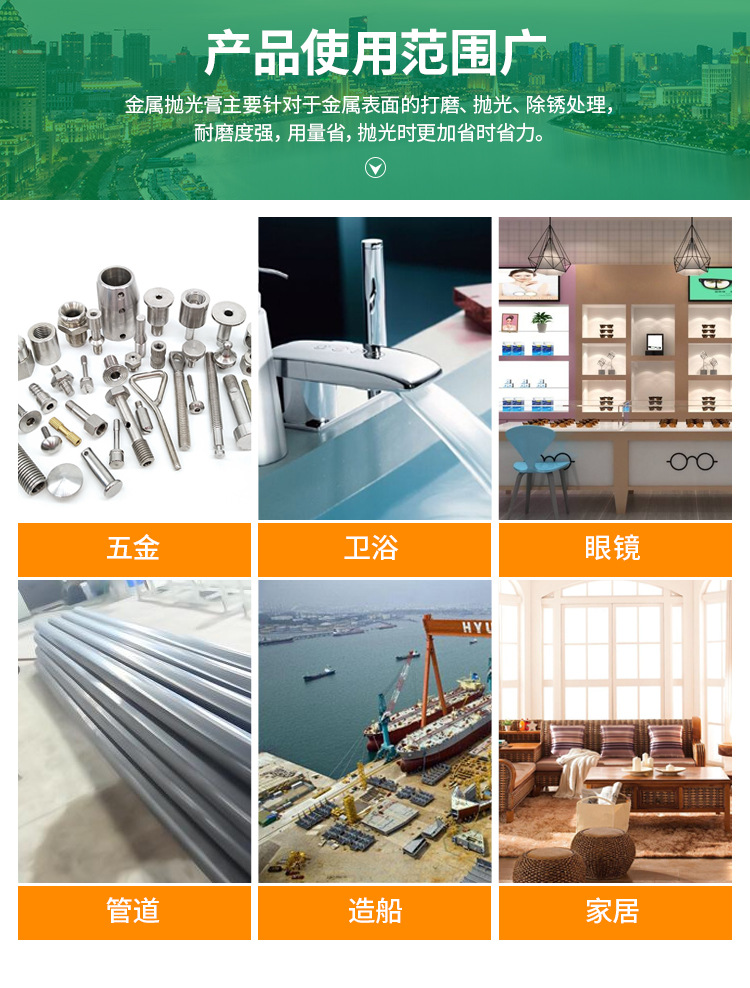 機械手黃色拋光膏與麻布輪配合使用針對不銹鋼,鐵,鋁,銅,鋅等有著較好的切削與亮度。拋光臘?磨削時,在磨削區由于磨粒的高速切屑和滑檫,產生較高的溫度,該溫度往往造成工件表面的燒傷并導致砂輪的嚴重磨損,結果使被加工零件的精度和表面完整性惡化。